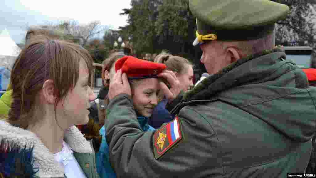 Крым.Реалии собрали самые наглядные кадры с празднований «Дня защитника Отечества», 9 мая, «дня ВДВ», иллюстрирующие масштабы милитаризации детства на аннексированном Россией полуострове.